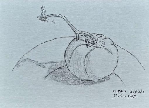 Objectif : prendre une tomate dans une assiette, et la dessiner de façon la plus exacte possible. Donner du volume sur le 2D en jouant sur la lumière et les ombres.
